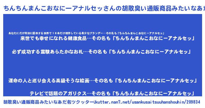 | 男性向けラノベタイトル風あだ名 | 『ちんちんまんこおなにーアナルセッの憂鬱』 |