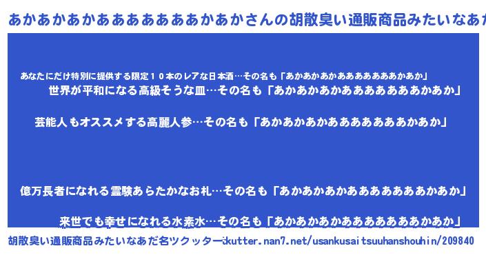 | 意味不明あだ名 | 『自称あかあかあかあああああああかあか』 |