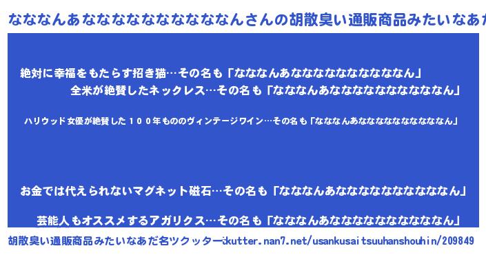 | ヘコむあだ名 | 『なななんあななななななななななん(小並感)』 |