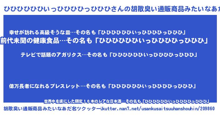 | 男性向けラノベタイトル風あだ名 | 『Re:ひひひひひひいっひひひひっひひひから始める異世界生活』 |