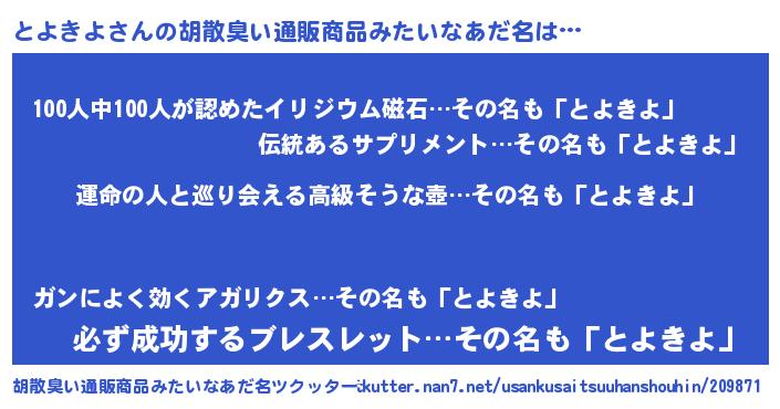 | 意味不明あだ名 | 『とよきよフォーエバー』 |
