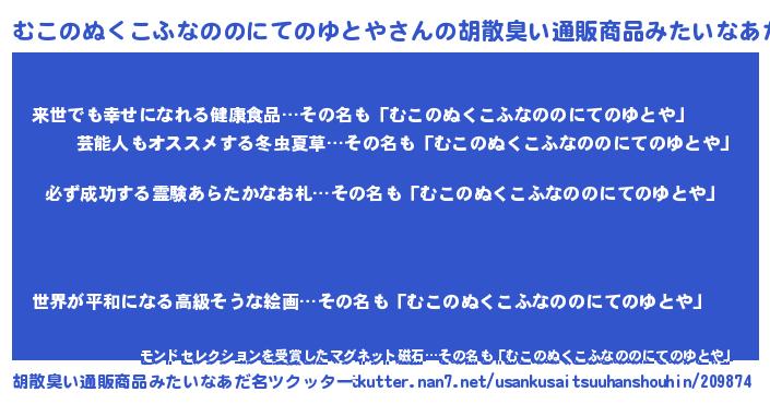 | 男性向けラノベタイトル風あだ名 | 『はたらくむこのぬくこふなののにてのゆとやさま!』 |