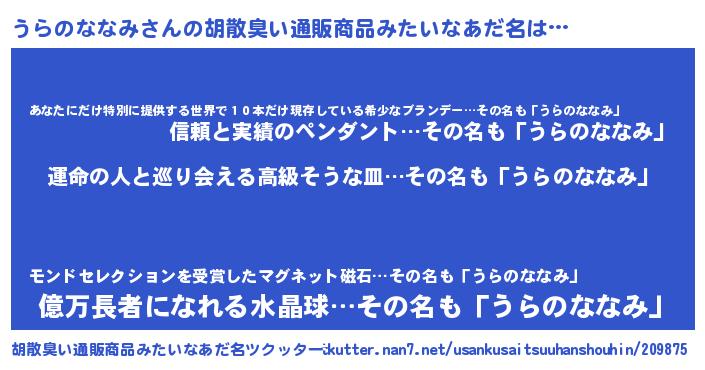 | 恥ずかしいあだ名 | 『うらっちょ』『プリティーうらのななみ』 |