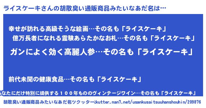 | 女子向けラノベタイトル風あだ名 | 『ライスケーキアンティーク』 |