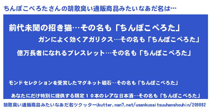 | 意味不明あだ名 | 『ペロリンちんぽこぺろた』 |