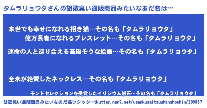 | ファンタジー風あだ名 | 『エターナルタムラリョウター』 |