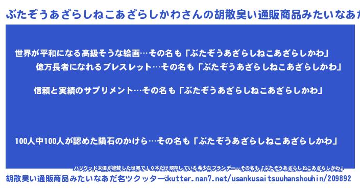 | 意味不明あだ名 | 『とにかく怪しいぶたぞうあざらしねこあざらしかわ』 |