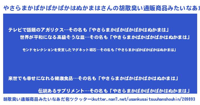 | 欧米人風あだ名 | 『ダニエルやさらまかばかばかばかはぬかまは』 |