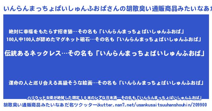 | 伝説のあだ名 | 『解き放たれた僧侶いんらんまっちょばいしゅんふおば』 |