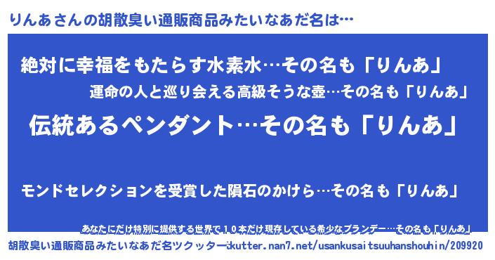 | 意味不明あだ名 | 『とにかく怪しいりんあ』 |