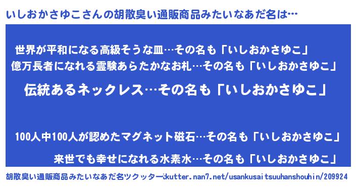 | 意味不明あだ名 | 『とにかく怪しいいしおかさゆこ』 |