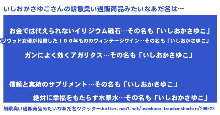 | ヘコむあだ名 | 『いしおかさゆこ(爆)』『いしっ子』 |