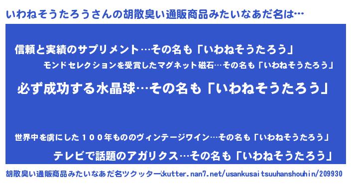 | ヒーロー風カッコイイあだ名 | 『スーパーイワネソウタロウ』 |