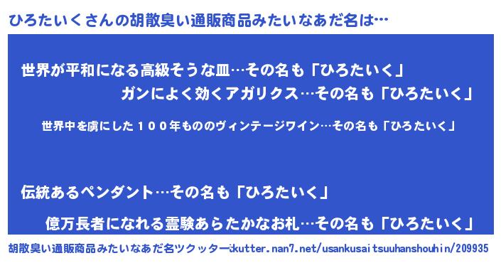 ひろたいくさんの胡散臭い通販商品みたいなあだ名をツクッター!
