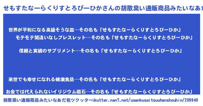 | 意味不明あだ名 | 『とにかく怪しいせもすたなーらくりすとろびーひか』 |