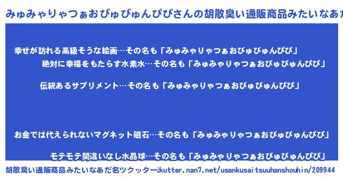 | ピコ太郎風あだ名 | 『ミュ三郎』『ピミ太郎』『ミコ六郎』 |
