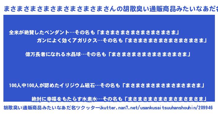 | 男性向けラノベタイトル風あだ名 | 『うちのまさまさまさまさまさまさまさまが世界を掌握している!』 |