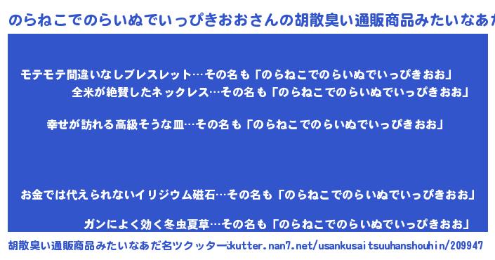 | 伝説のあだ名 | 『秘められし陰陽師のらねこでのらいぬでいっぴきおお』 |