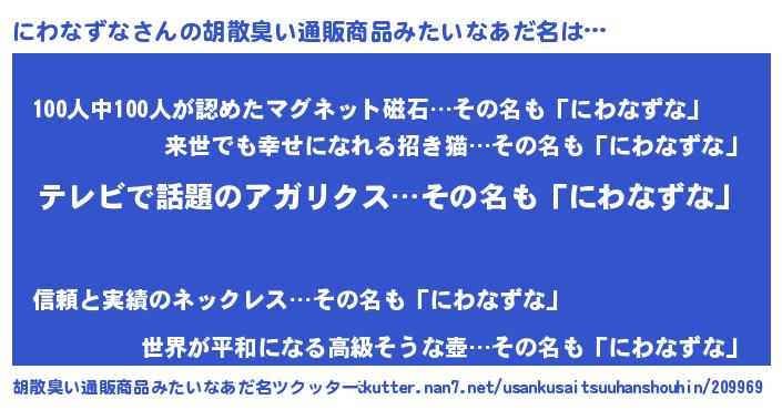 | 意味不明あだ名 | 『自称にわなずな』『永久保存にわなずな』 |