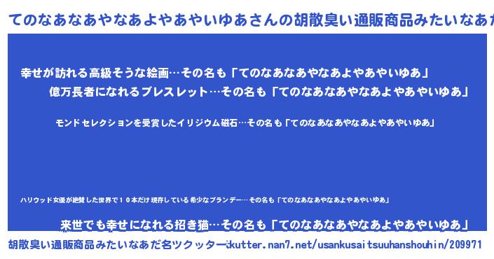 | 伝説のあだ名 | 『救世主となる占い師てのなあなあやなあよやあやいゆあ』 |