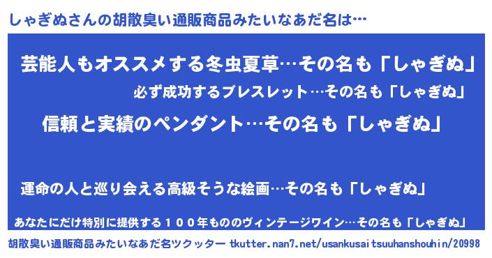 | 意味不明あだ名 | 『とにかく怪しいしゃぎぬ』 |