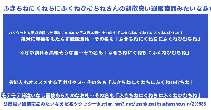 | 男性向けラノベタイトル風あだ名 | 『はたらくふきちねにくねちにふくねひむちねさま!』 |
