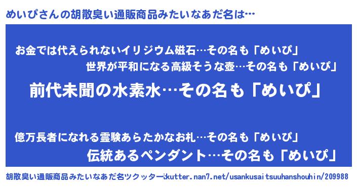 | ヒーロー風カッコイイあだ名 | 『ネオメイピ』『愛の使者めいぴ』 |