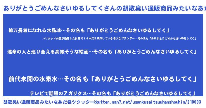 | 欧米人風あだ名 | 『アンジェラ・ありがとうごめんなさいゆるしてく』 |