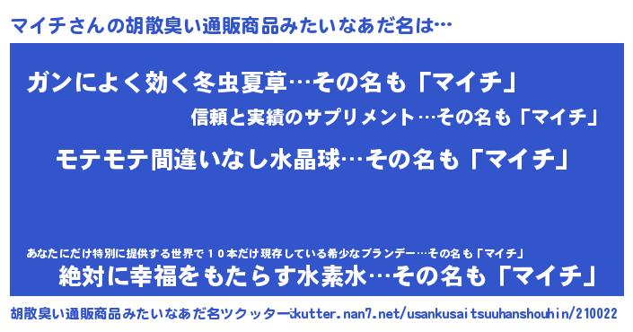 | 意味不明あだ名 | 『ペロリンマイチ』『自称マイチ』 |