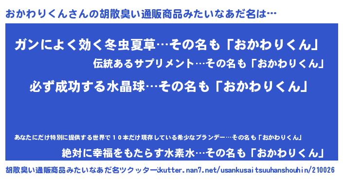 | 男性向けラノベタイトル風あだ名 | 『おかわりくんの憂鬱』 |