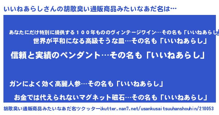 | 女子向けラノベタイトル風あだ名 | 『いいねあらしは平凡を望む』 |