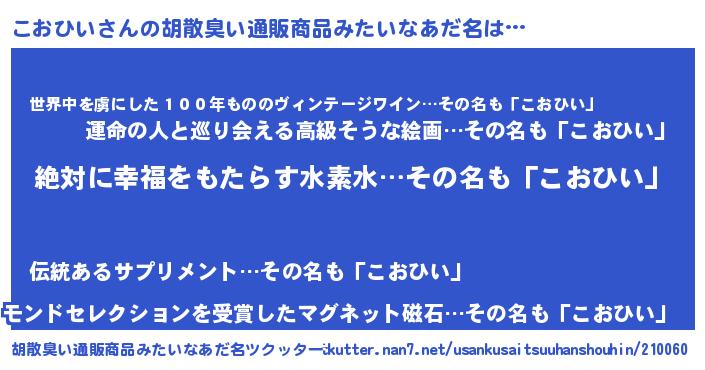 | ヘコむあだ名 | 『こおひい(苦笑)』『豆乳』『こおお』 |