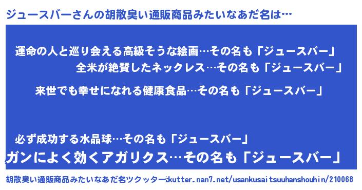 | 意味不明あだ名 | 『永久保存ジュースバー』 |