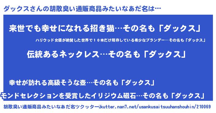 ダックスさんの胡散臭い通販商品みたいなあだ名をツクッター!