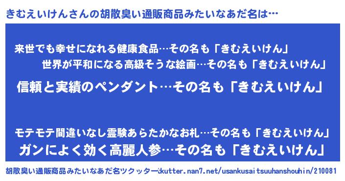 | ヘコむあだ名 | 『きむっちょ』『きむえいけん(笑)』 |
