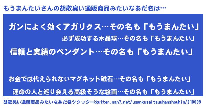 | ポケモン風あだ名 | 『モウゴンZ』『ヒモウマンタイ』 |