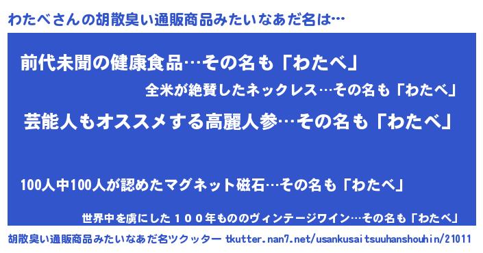 | ヘコむあだ名 | 『わたべ(小並感)』『わたっ子』 |