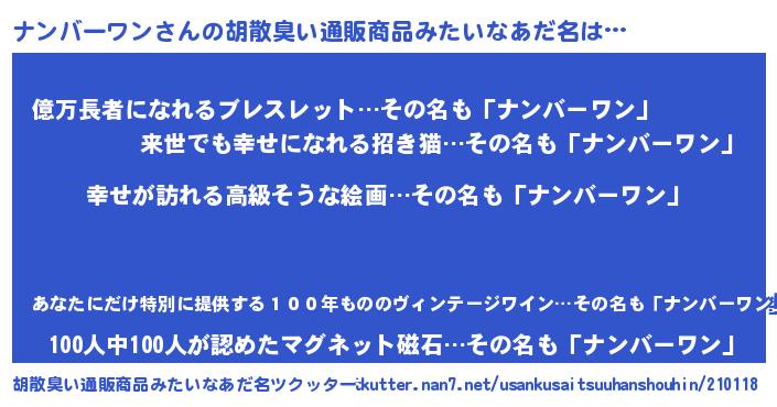 | 意味不明あだ名 | 『ナンバーワンフォーエバー』 |