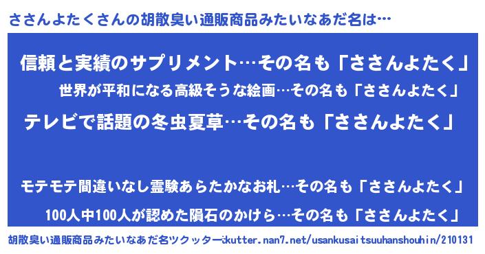 | 意味不明あだ名 | 『自称ささんよたく』 |
