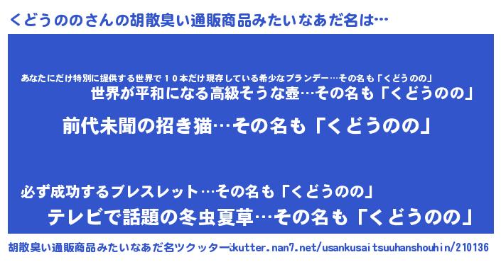 | 意味不明あだ名 | 『永久保存くどうのの』『自称くどうのの』 |