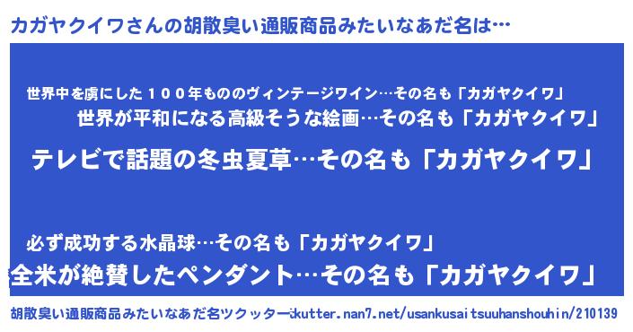 | 意味不明あだ名 | 『自称カガヤクイワ』 |