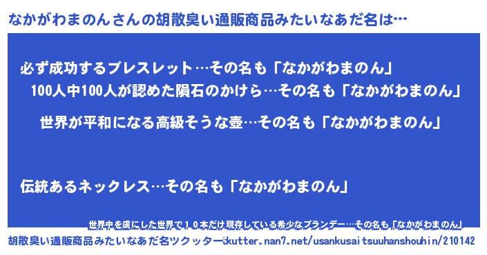 | 意味不明あだ名 | 『なかがわまのんフォーエバー』 |