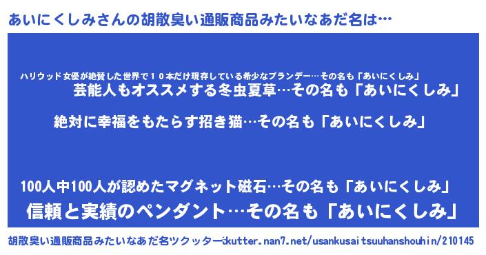 | 欧米人風あだ名 | 『アンジェラ・あいにくしみ』 |