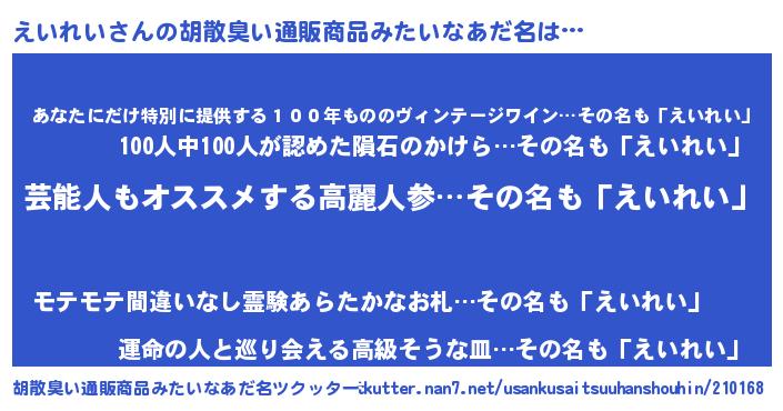 | 意味不明あだ名 | 『自称えいれい』『えいれいフォーエバー』 |