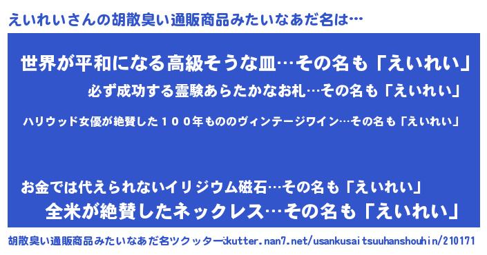 | 欧米人風あだ名 | 『アンジェラ・えいれい』 |
