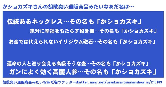 | ヘコむあだ名 | 『かシっ子』『かショカズキ(爆)』 |
