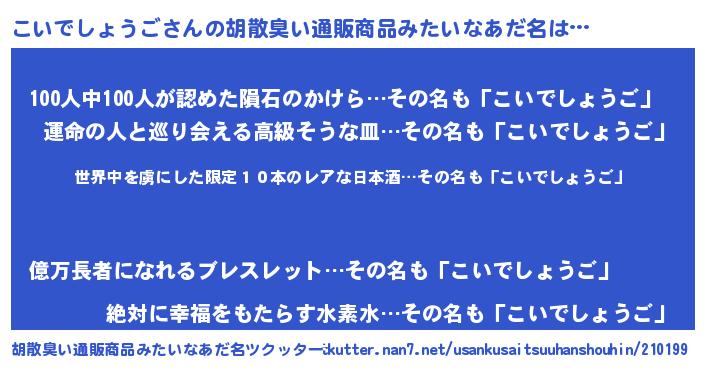 | 男性向けラノベタイトル風あだ名 | 『この素晴らしい世界にこいでしょうごを!』 |