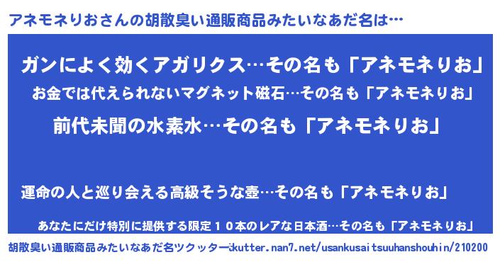 | 意味不明あだ名 | 『永久保存アネモネりお』 |