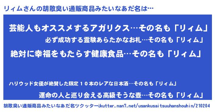 | 男性向けラノベタイトル風あだ名 | 『はたらくリィムさま!』『緋弾のリィム』 |