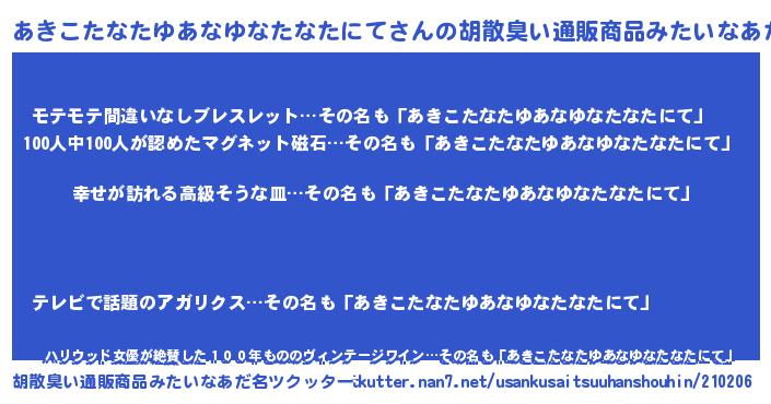 | 伝説のあだ名 | 『秘められし陰陽師あきこたなたゆあなゆなたなたにて』 |